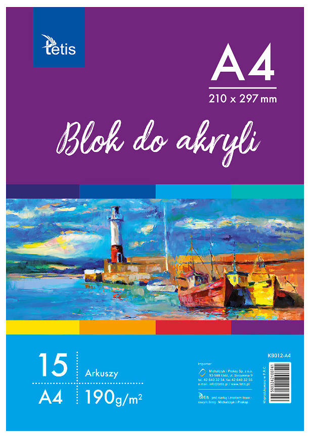 Blok z papieru białego prasowanego na ciepło o lekko fakturowanej powierzchni, wykonany z celulozy (pulpa drzewna). Papier bezkwasowy i trwały (odporny na starzenie), przeznaczony do farb akrylowych, olejnych.