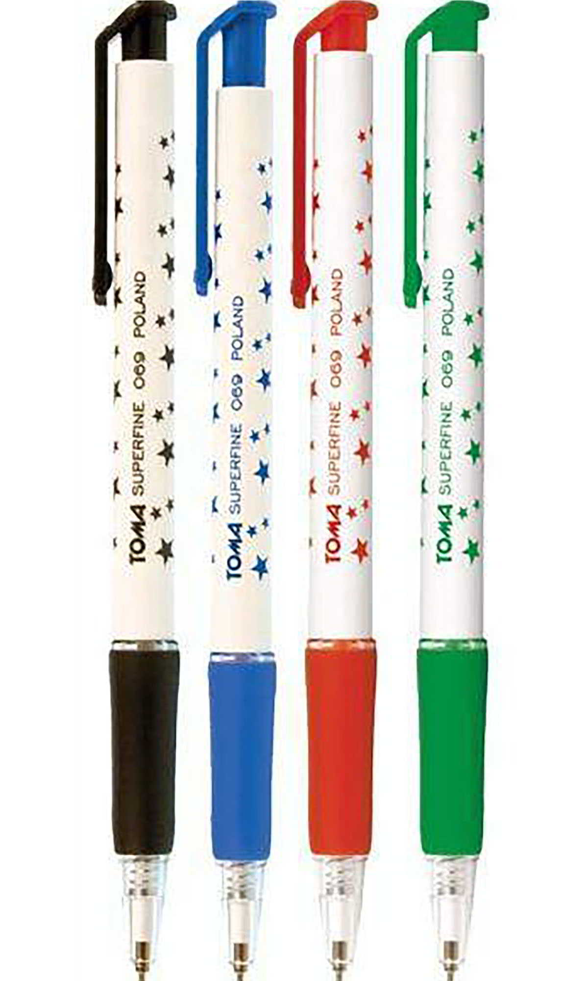 Długopis w plastikowej obudowie w gwiazdki w kolorze tuszu. Trwały mechanizm włączający, wygodny, gumowany uchwyt. Wkład: 0,5mm. Kolor niebieski.