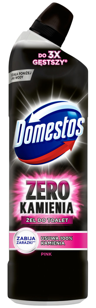 Domestos Zero Kamienia Pink 750 ml to gęsty żel do WC do usuwania kamienia i dezynfekcji toalety. Do 3x gęstsza formuła dłużej utrzymuje się na ściankach muszli, działa także poniżej linii wody, skutecznie rozpuszczając osady z twardej wody i zabrudzenia organiczne. Produkt zabija 99,9% zarazków (bakterie, grzyby, spory), pomaga zapobiegać ponownemu osadzaniu się kamienia i eliminuje nieprzyjemne zapachy. Delikatny, kwiatowy zapach Pink pozostawia w toalecie długotrwałe wrażenie świeżości, a pojemność 750 ml sprawdza się w codziennym użyciu w domu i małych obiektach usługowych.
