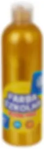 Farba plakatowa szkolna metaliczna złota? do malowania na papierze, kartonie, drewnie, nieglazurowanej ceramice i kamieniu. Wodorozcieńczalne farby kryjące są niezwykle wydajne. Składają się w 98% z naturalnych składników i są odporne na działanie światła i ścieranie. Opakowanie zawiera 250ml.