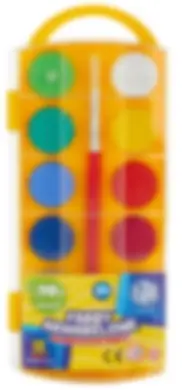 Farby akwarelowe to wysokiej jakości farby wodorozcieńczalne gwarantujące żywe i intensywne kolory. Dzięki wysokiej jakości drobno roztartych pigmentów farby doskonale rozprowadzają się na papierze. Pozwalają również łączyć się z farbami temperowymi, plakatowymi ikredkami woskowymi. Po wyschnięciu matowieją i są odporne na promienie słoneczne. Zestaw zawiera 12kolorów.