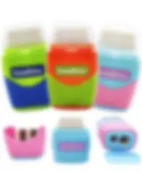 Zestaw zawiera połączenie gumki i temperówki w jednym. Z jednej strony miękka gumka, która nie uszkadza struktury papieru. Z drugiej podwójna temperówka na cienkie i grube kredki. Po środku znajduje się pojemnik na ścinki. Idelny zestaw do szkolnego piórnika.