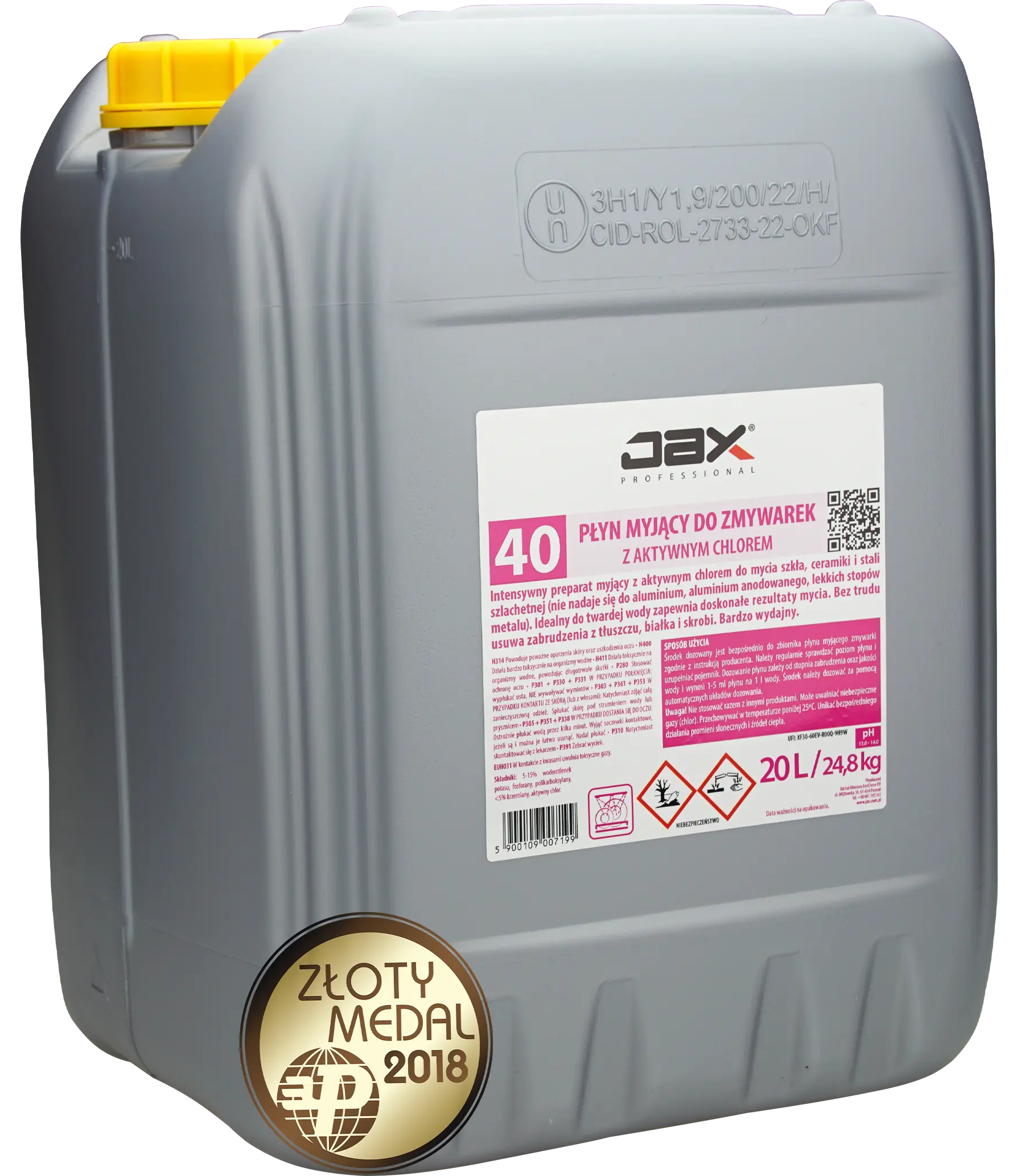 JAX Mycie naczyń w zmywarkach 20L Profesional z aktywnym Chlorem