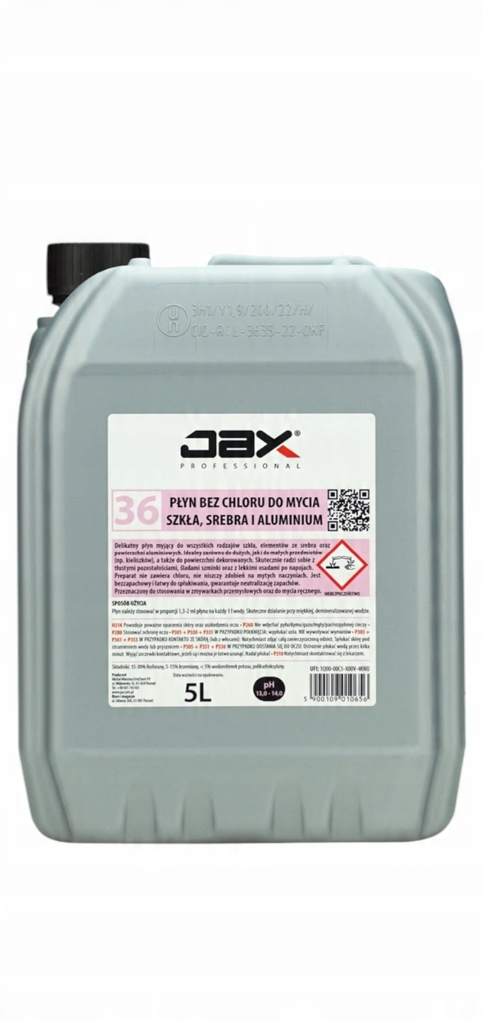 JAX Mycie SZKŁA SREBRA I ALUMINIUM w zmywarkach BEZ CHLORU 5L