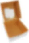 Jednoczęściowe pudełko cukiernicze do pakowania ciast. Wykonane z gładkiego kartonu białego na zewnątrz, a brązowego (kraftowego) wewnątrz pudełka.