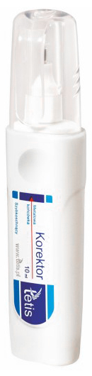 Korektor posiada metalową teleskopową końcówkę, zawiera szybkoschnący płyn korekcyjny.