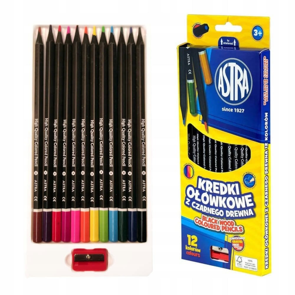 Kredki ołówkowe z czarnego drewna charakteryzują się doskonałą jakością i wyrazistością kolorów. Kredki są miękkie w użyciu, nie pylą i nie rozmazują się, są również łatwe w temperowaniu. Opakowanie zawiera: 12 kolorów + temperówka.