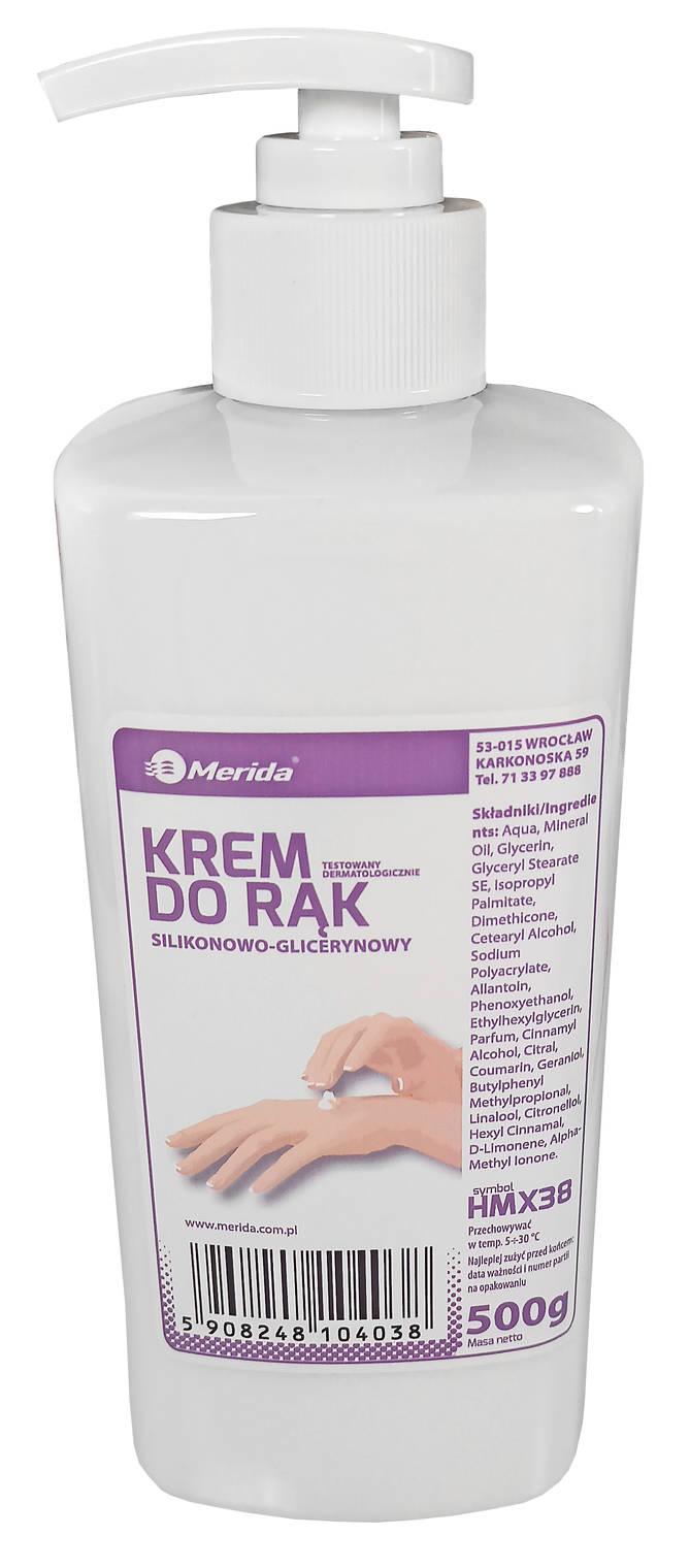 Krem do pielęgnacji dłoni, zawiera substancje o działaniu nawilżającym. Polecany szczególnie osobom, które w swojej pracy są narażone na wysuszanie skóry rąk ze względu na ich częste mycie.
