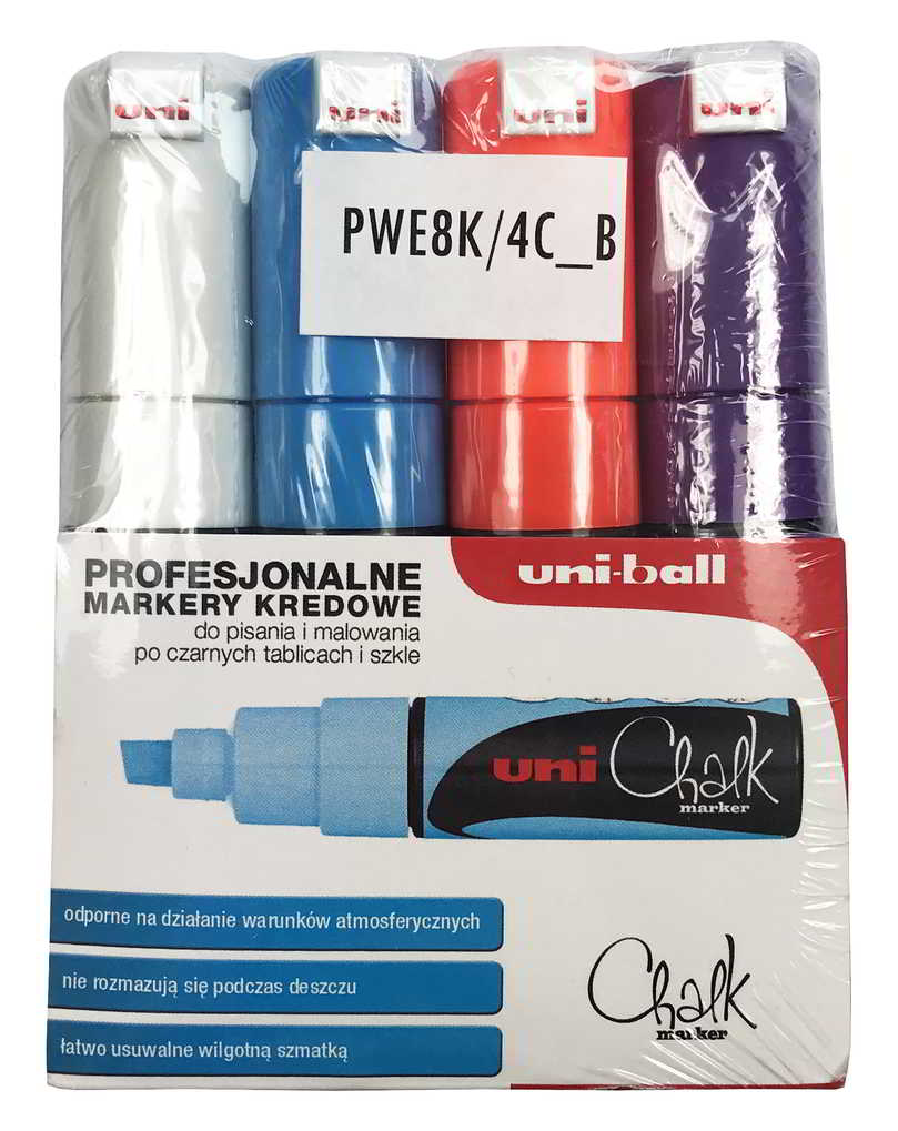 Marker/Pisak Kredowy Zestaw 4 kol.UNIPWE-8K/4c