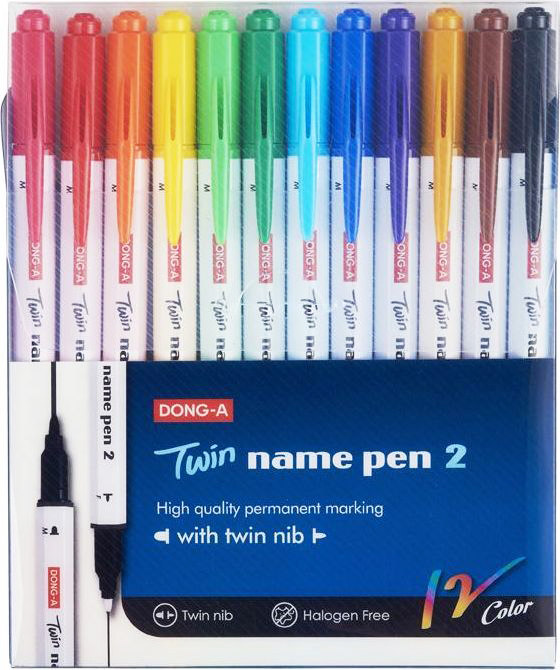 Mazaki/Pisak Perm.Dwustronny komp.12sztDONG-A Twin name pen2