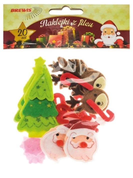 Naklejki choinki/renifery z filcu na samoprzylepnej taśmie umożliwiającej łatwe i wygodne odklejanie. Opakowanie zawiera: 20szt.