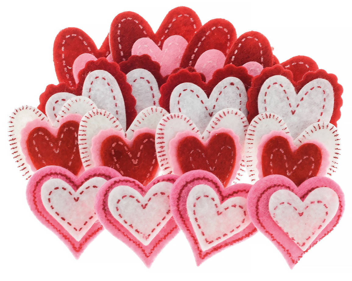 Naklejki serca z filcu na samoprzylepnej taśmie umożliwiającej łatwe i wygodne odklejanie. Opakowanie zawiera: 16szt.