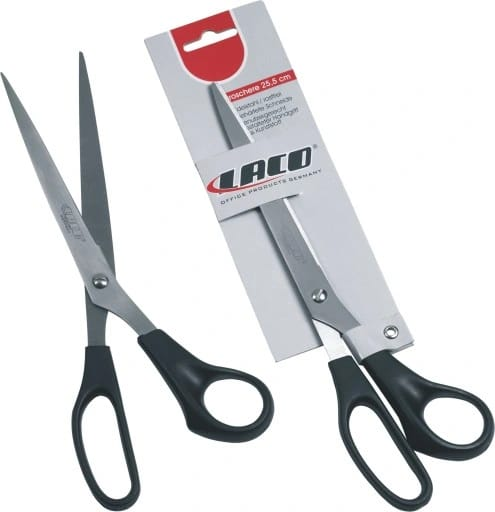 Nożyczki biurowe o długości 25,5cm. Posiadają satynowe ostrze ze stali nierdzewnej oraz ergonomiczne uchwyty.