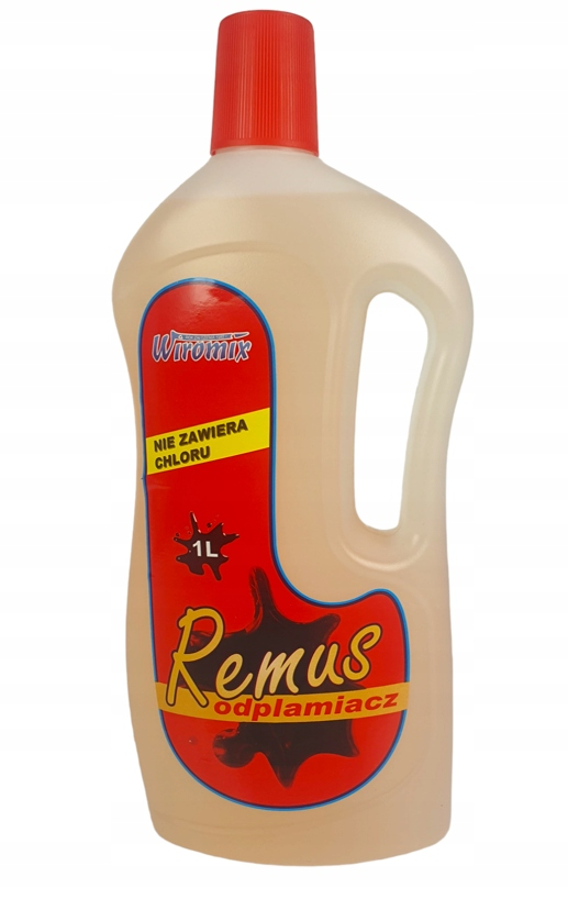 Odplamiacz REMUS bez chloru w płynie, skutecznie usuwa uporczywe plamy. Jest to doskonały odplamiacz wspomagający działanie środków piorących. Nie zawiera chloru i dlatego może być użyty do tkanin delikatnych i kolorowych, dla których nie ma przeciwskazań dla użycia wybielacza nadtlenowego. Można używać go przy kolorowych i białych tkaninach. Opakowanie: 1L