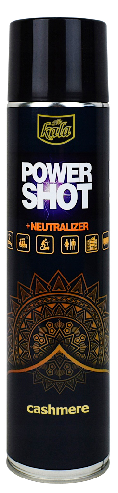 Neutralizator nieprzyjemnych zapachów, odświeżacz Kala POWER SHOT to produkt z rewolucyjnym sposobem dozowania, dzięki któremu jedno naciśnięcie wentyla (ok. 1 sekunda) neutralizuje nieprzyjemne zapachy oraz aromatyzuje około 200m3. W składzie odświeżacza obecne są substancje czynne, dzięki którym nieprzyjemne zapachy są neutralizowane a nie jak w przypadku większości odświeżaczy przykrywane. Wraz z neutralizacją nieprzyjemnych zapachów POWER SHOT zapewnia równieź aromatyzację przestrzeni.