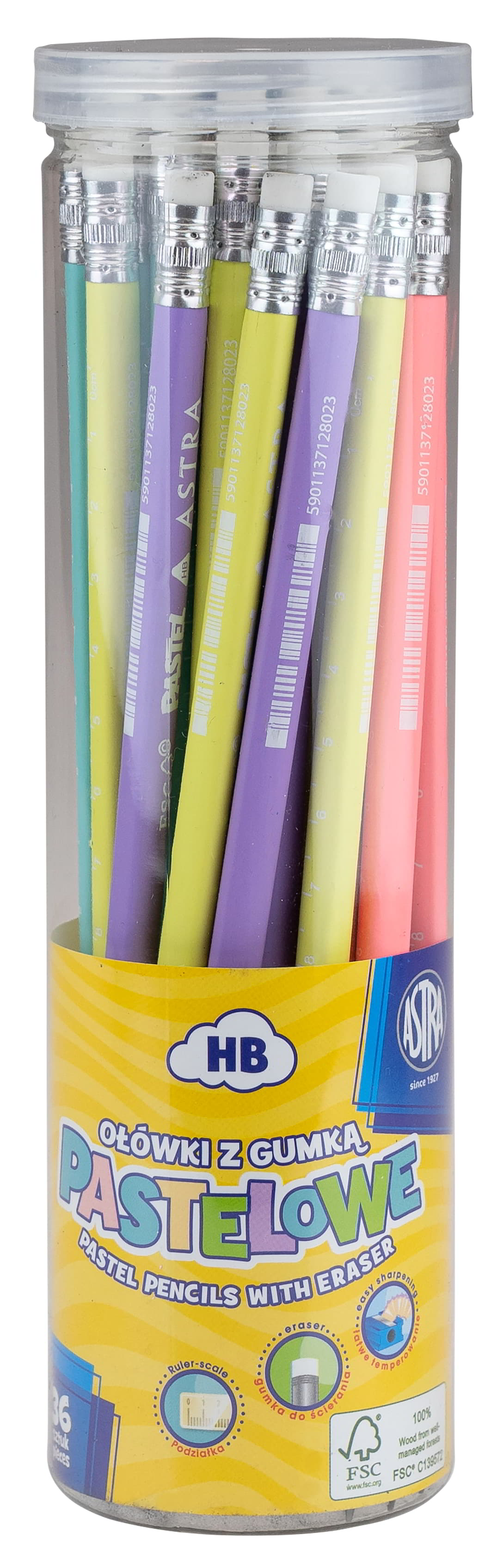 Drewniany pastelowy ołówek grafitowy z gumką posiada trójkątny przekrój, prawidłowo kształtujący ukłąd dłoni. Lakierowana oprawa z czarnego drewna wygląda niezwykle atrakcyjnie. Ołówek o twardości: B.