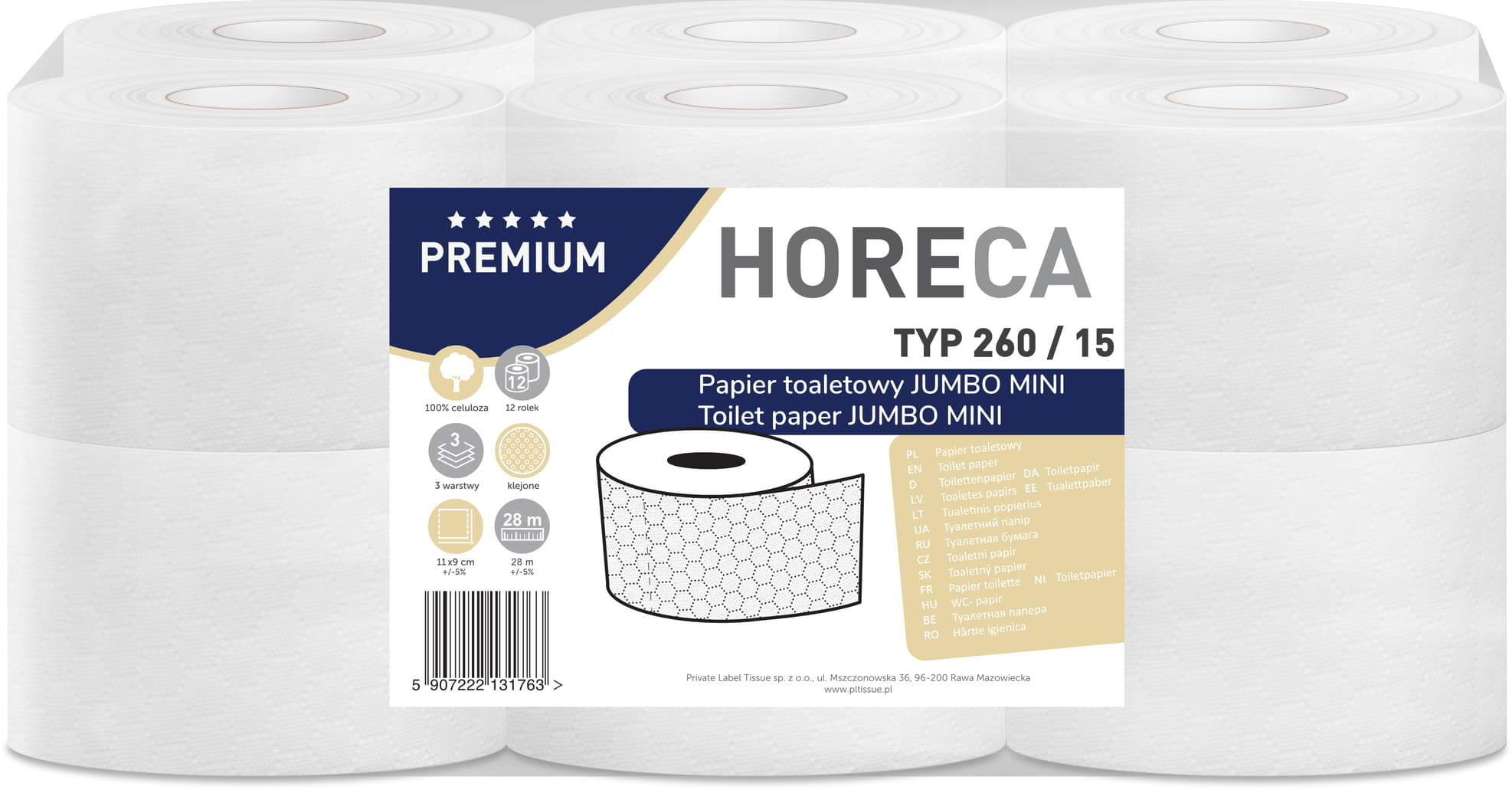 Papier toaletowy HORECA PREMIUM 12rol 3 warstwowy długość rolki 28mb / 1,34kg Jumbo Mini