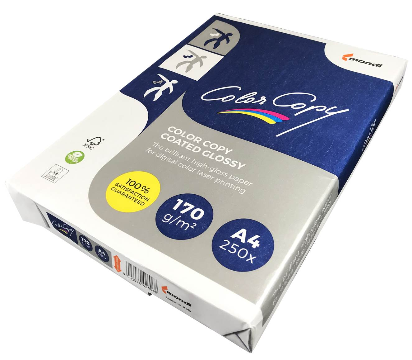 Papier kredowy, gramatura: 160g. Format: A4, (210x297mm). Opakowanie zawiera 250 arkuszy.