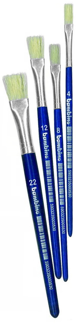 Pędzle do malowania z naturalnego, sztywnego włosia. Posiadają płaski kształt oraz rączkę z drewna brzozowego. Opakowanie zawiera: 3sztuki w rozmiarach 4, 6, 8.