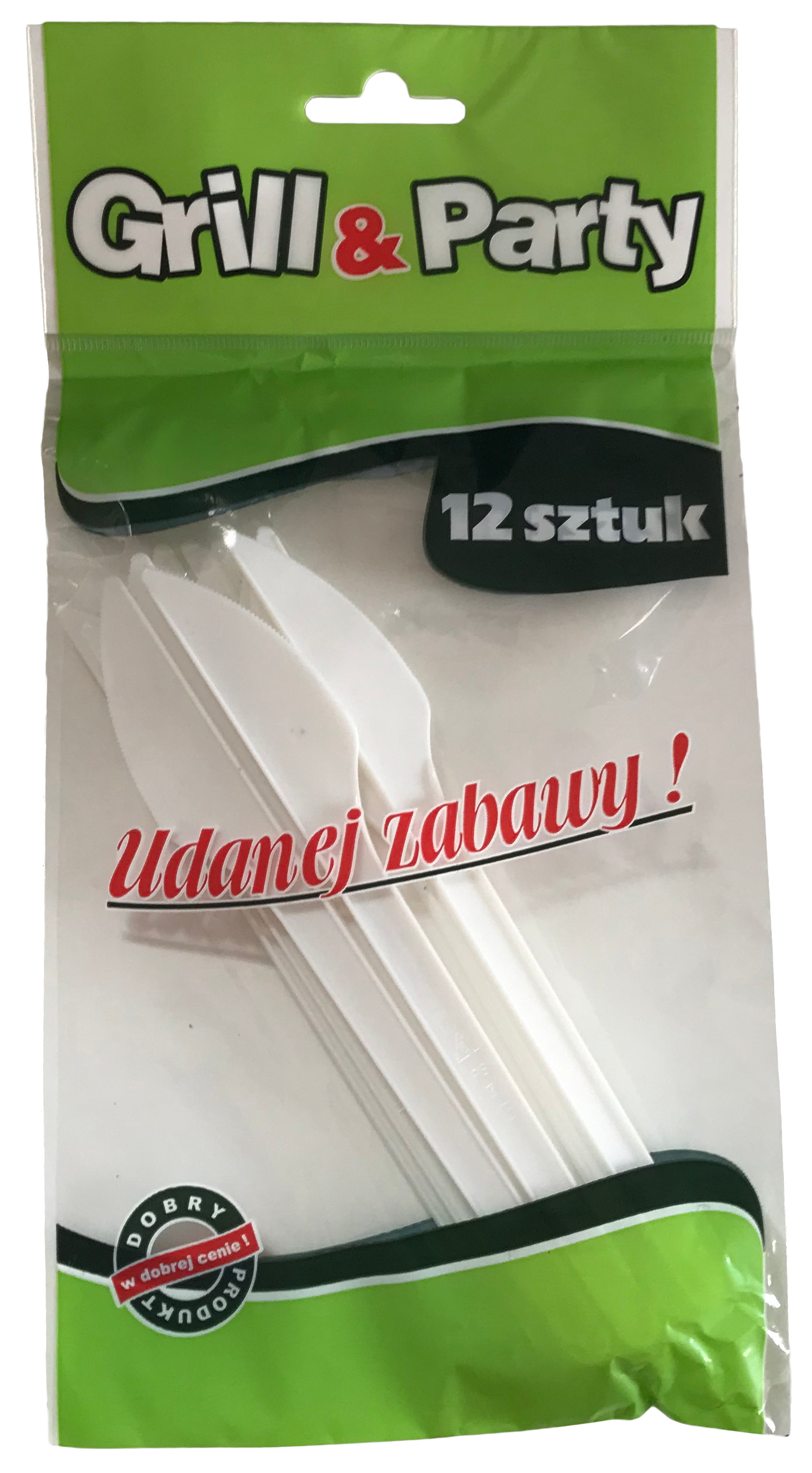 Jednorazowy nóż wykonany z lekkiego plastiku, wygodny w użytkowaniu. Niezbędny w różnego rodzaju barach i restauracjach. Doskonale nadaje się do małej gastronomii, do spożywania posiłków typu fast food. Opakowanie zawiera: 12 szt.