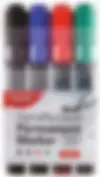 Marker permanentny posiada system bezpośredniego dostarczania tuszu co umożliwia dłuższe pisanie niż system filtrowy. Zaznacza grubo i równomiernie do ostatniej kropli. Tusz na bazie alkoholu, pisze na większości powierzchni, takich jak: szkło, plastik, metal, drewno, itp. Opakowanie zawiera: 4szt-2mm.
