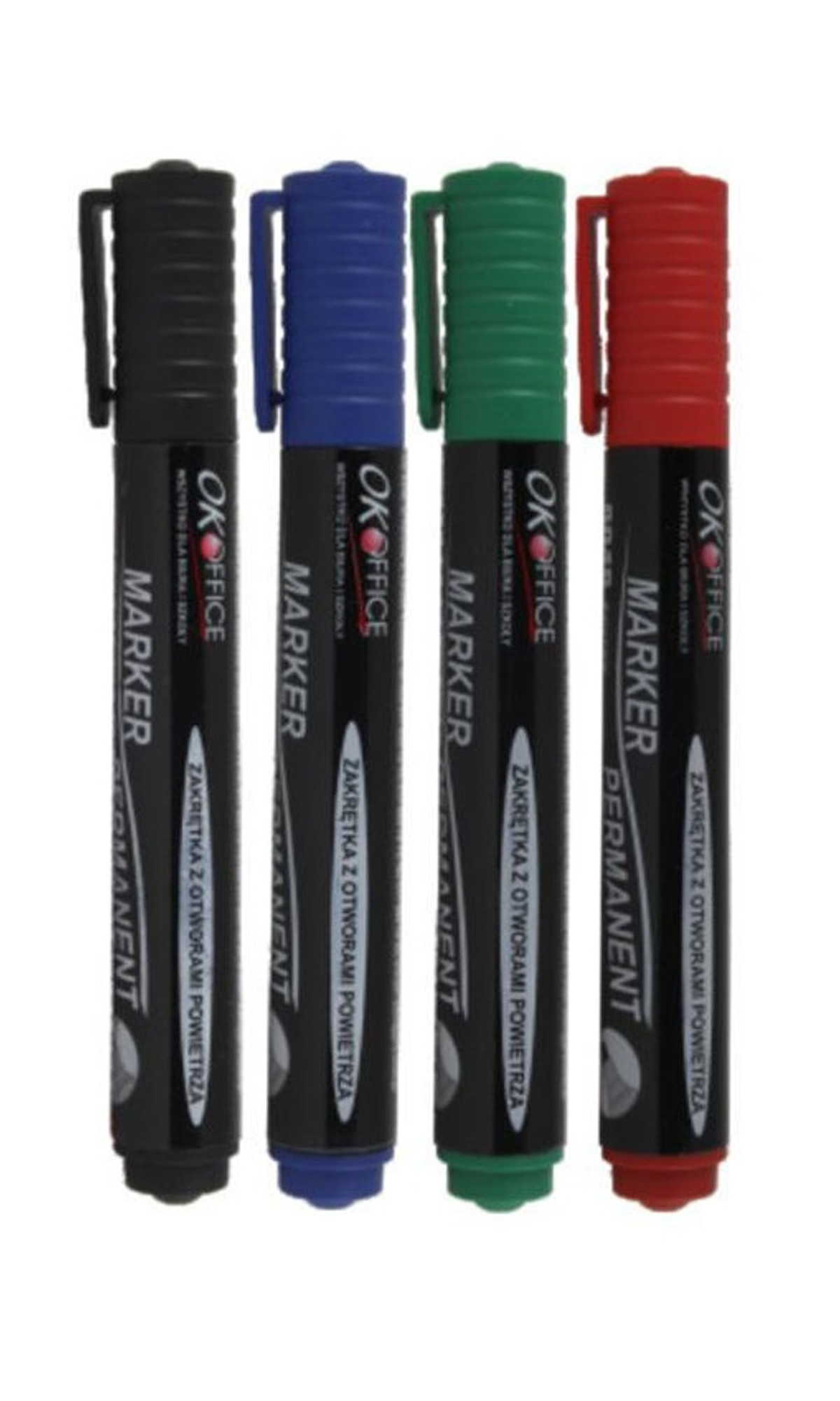 Wodoodporny marker z okrągłą końcówką. Szybkoschnący, nietoksyczny, posiada intensywny czarny kolor, grubość lini pisania: 0,3 mm.