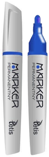 Niebieski marker permanentny z końcówką stożkową o grubości linii pisania 3mm. Jest wodoodporny, szybkoschnący, trwały, odporny na blaknięcie, nietoksyczny tusz na bazie alkoholu. Przeznaczony do pisania na wszelkiego rodzaju powierzchniach.