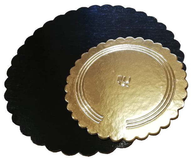 Podkład pod tort wykonany z cienkiej i sztywnej tektury, laminowanej złotą folią. Podkład idealnie wykorzystać można do oddzielenia pięter tortów. Można podać na nim także inne wypieki.