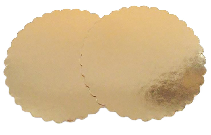 Podkład pod tort wykonany z cienkiej i sztywnej tektury, laminowanej złotą folią. Podkład idealnie wykorzystać można do oddzielenia pięter tortów. Można podać na nim także inne wypieki.