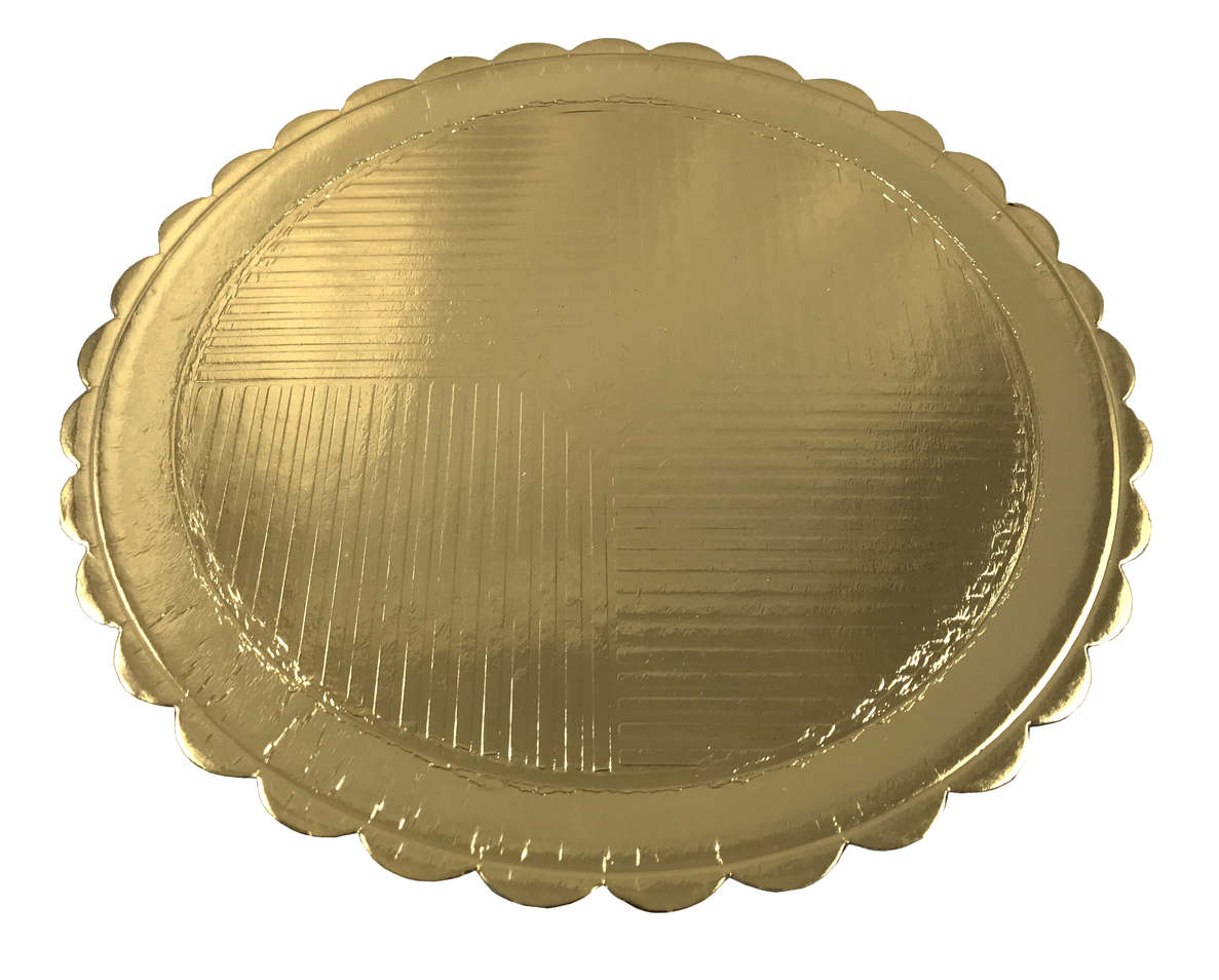 Podkład pod tort wykonany z cienkiej i sztywnej tektury, laminowanej złotą folią. Podkład idealnie wykorzystać można do oddzielenia pięter tortów. Można podać na nim także inne wypieki.