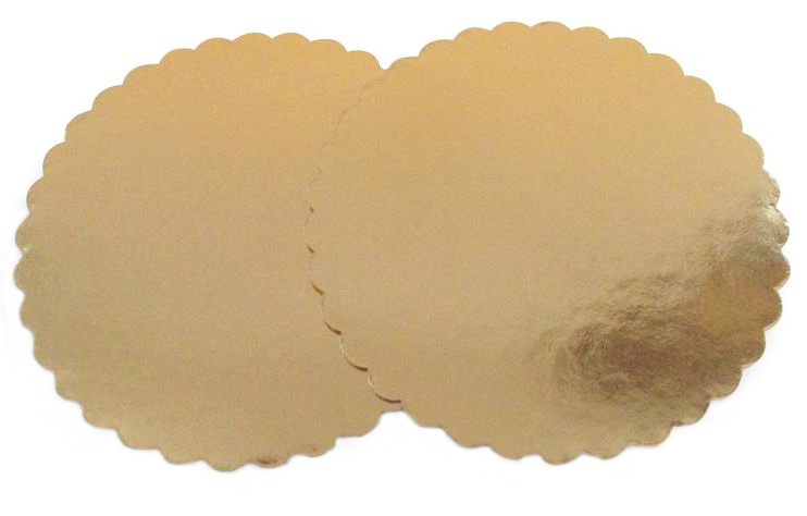 Podkład pod tort wykonany z cienkiej i sztywnej tektury, laminowanej złotą folią. Podkład idealnie wykorzystać można do oddzielenia pięter tortów. Można podać na nim także inne wypieki.
