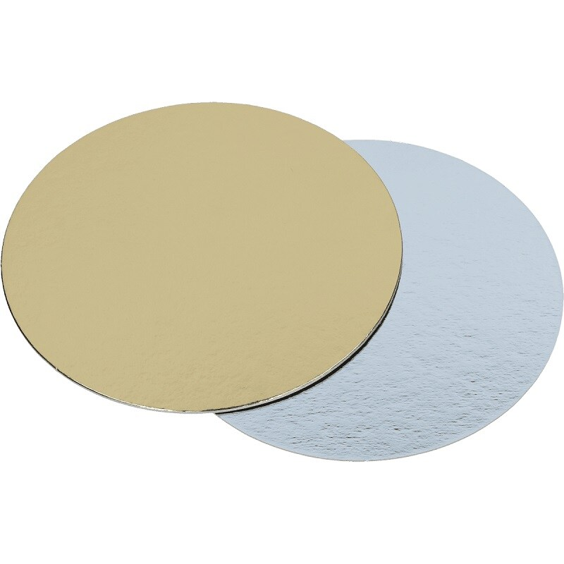 Podkład pod tort wykonany z cienkiej i sztywnej tektury, laminowanej złotą folią. Podkład idealnie wykorzystać można do oddzielenia pięter tortów. Można podać na nim także inne wypieki.