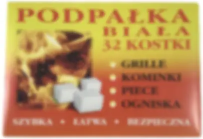 Podpałka do grilla, w postaci białej tabliczki, podzielona na 32 kosteczki. Rozpałka przeznaczona do rozpalania pieca, kominka czy grilla. Charakteryzuje się wysoką jakością i dlugim czasem spalania. Łatwo się rozdziela na pojedyncze kostki oraz łatwo się rozpala.