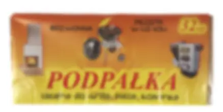 Podpałka do grilla, w postaci białej tabliczki, podzielona na 32 kosteczki. Rozpałka przeznaczona do rozpalania pieca, kominka czy grilla. Charakteryzuje się wysoką jakością i dlugim czasem spalania. Łatwo się rozdziela na pojedyncze kostki oraz łatwo się rozpala.