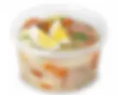 Przeźroczysty pojemnik. Wykonany z polipropylenu, chętnie stosowany przez firmy cateringowe, bary małej gastronomii itp. pojemność: 350ml, materiał: PP.