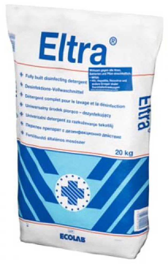 Proszek Eltra jest przeznaczony do prania, wybielania i chemiczno-termicznej dezynfekcji delikatnej, kolorowej i białej bielizny operacyjnej z włókien syntetycznych, mieszanych i czystej bawełny. Opakowanie: 20kg.