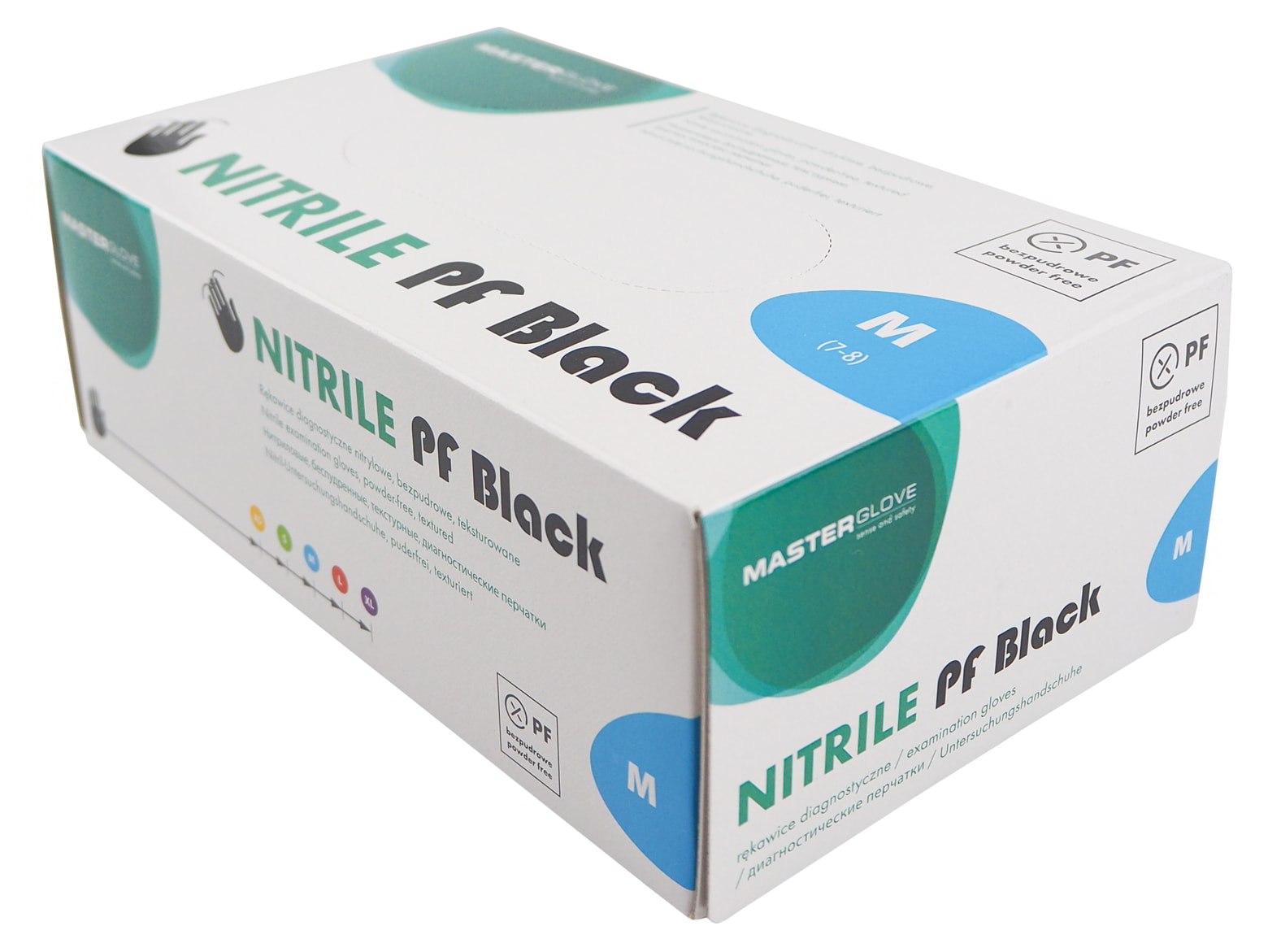 Rękawice NITRYLOWE CZARNE M 100sztMASTER GLOVE 4g - 12mikr. bezpudrowe chlorowane