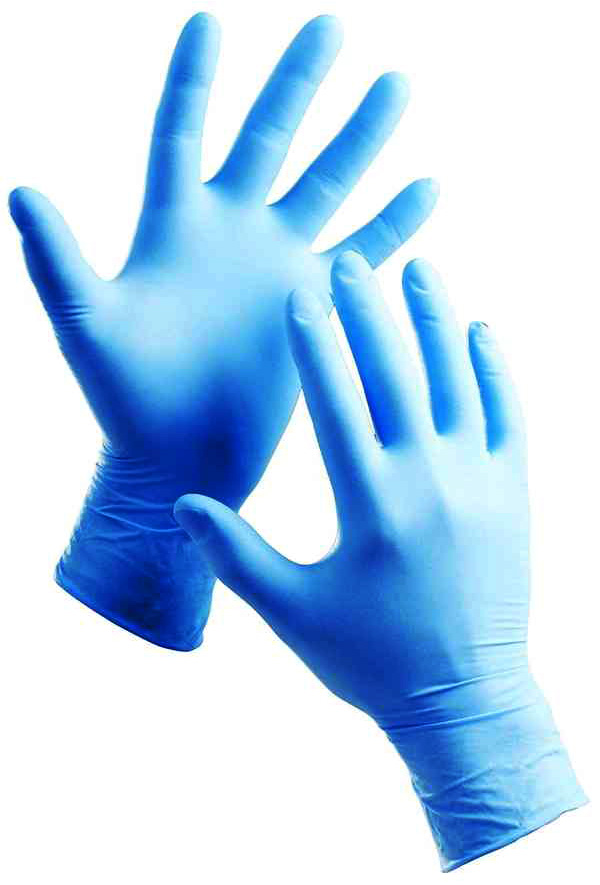 Jednorazowe rękawice bezpudrowe wykonane z nitrylu w kolorze niebieskim.