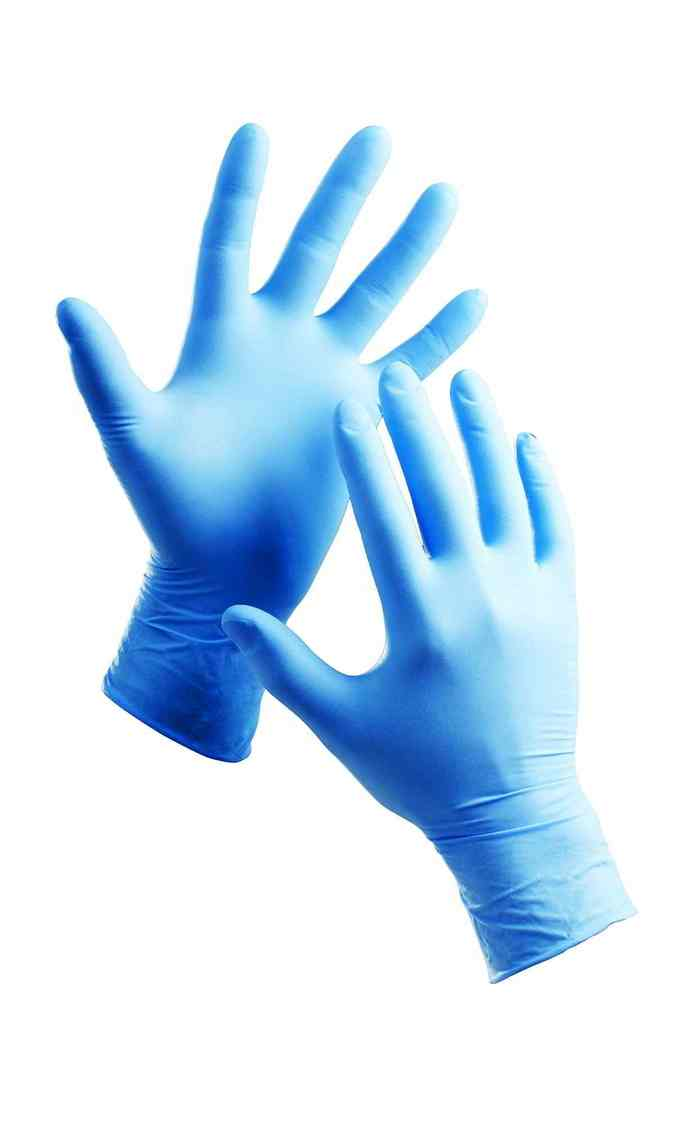 Jednorazowe rękawice bezpudrowe wykonane z nitrylu w kolorze niebieskim.