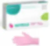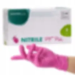 Rękawice nitrylowe w kolorze różowym. Odcień różu zależy od partii.