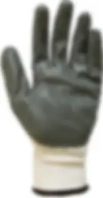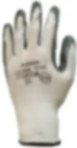 Rękawice ochronne z białej elastycznej dzianiny poliestrowej, bez szwów, powlekane w części chwytnej szarym nitrylem. Rękawice zakończone są elastycznym ściągaczem.