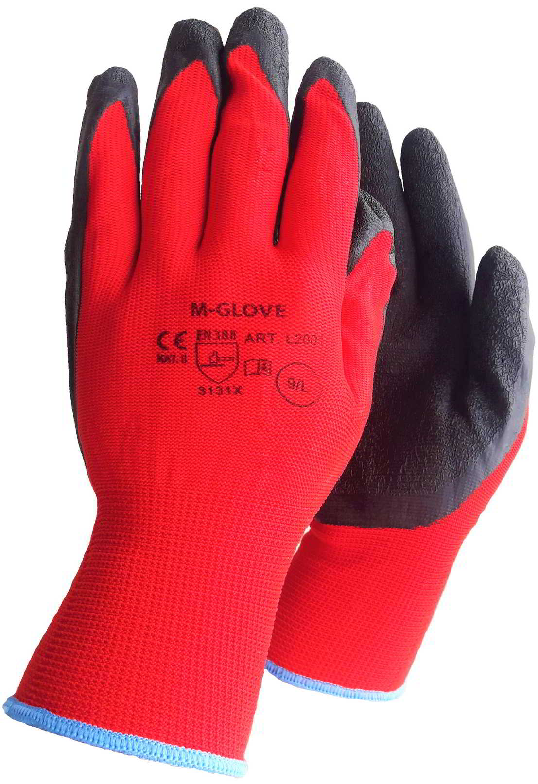 Rękawice ochronne wykonane z dzianiny poliestrowej, powlekane miękkim, odpornym na ścieranie lateksem w kolorze czerwonym. Struktura gumy zapewnia wyśmienitą zręczność i bardzo dobrą przyczepność.