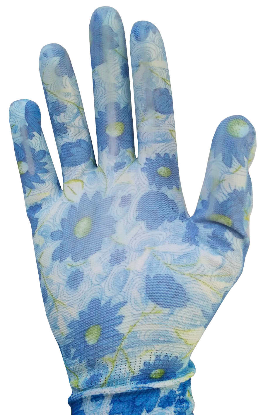 Rękawice ochronne DALIA KWIATY 1 para 9/L z dzianiny poliestrowej powlekane poliuretanem