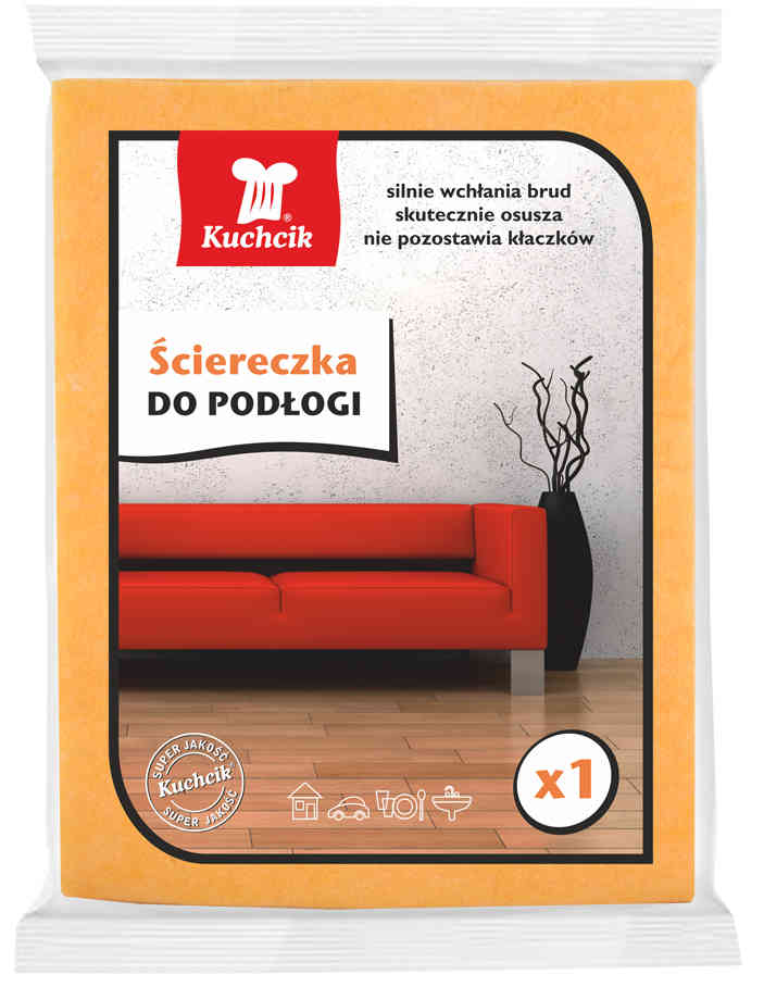 Ścierka podłogowa wykonana jest z chłonnego i wytrzymałego materiału, który doskonale wyczyści na mokro każdy zaschnięty brud. Idealnie nadaje się do każdego typu gładkiej posadzki - zmywanie zwilżoną ścierką lub polerowanie na sucho.