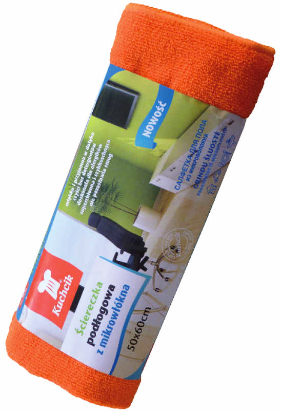 Ścierka podłogowa Kuchcik, wykonana z mikrofibry, dzięki grubej i mięsistej konsystencji charakteryzuje się wysoką chłonnością. Ma szerokie zastosowanie zarówno w domu jak i w biurze. Nie pozostawia smug i nie rysuje powierzchni. Wymiary: 50/60cm.