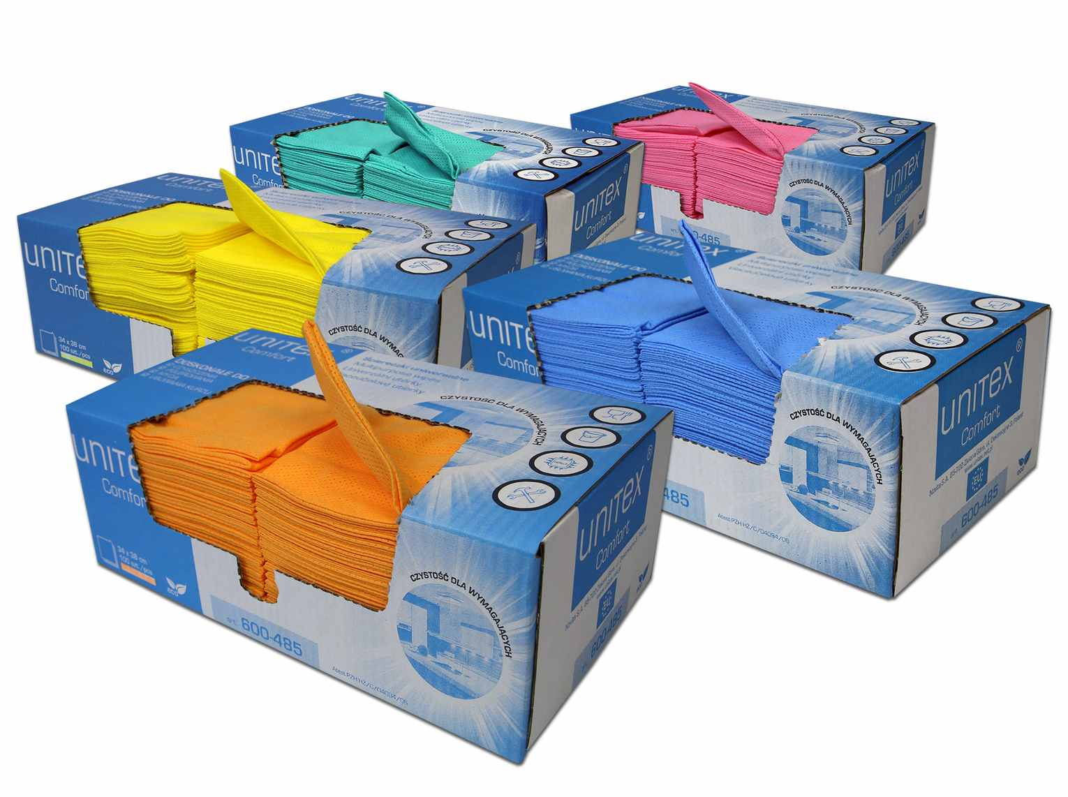 Odpowiednio dobrany skład oraz grubość ściereczki, gwarantują wysoką chłonność wody i innych płynów. Ścierki dzięki nowoczesnej technologii wytwarzania nie pylą, nie zostawiają drobin na wycieranej powierzchni, nie ulegają odbarwieniu. Znajdują zastosowanie: w gastronomii, firmach cateringowych, firmach sprzątających oraz w gospodarstwie domowym. Dostępne kolory: żółty, zielony, niebieski, pomarańczowy, różowy.