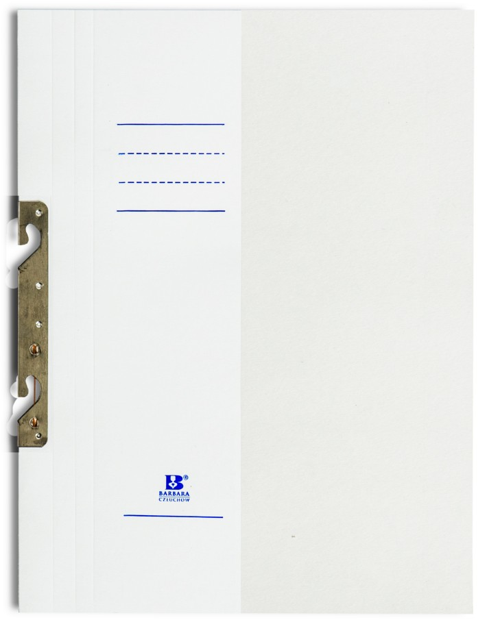 Skoroszyt w formacie: A4, wykonany z wysokiej jakości bezkwasowej tektury, gramatura: 250-280g. Metalowa zawieszka umożliwia szybkie wpięcie do segregatora, plastikowy docisk do dokumentów zabezpiecza przed skaleczeniem. 1/2 strony tytułowej. Wkład przechowywanych dokumentów A4 do 30mm.