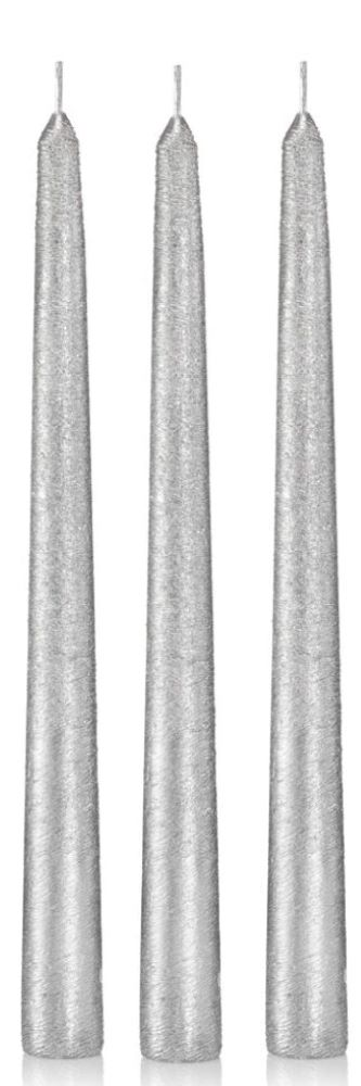 Świeca stożkowa kolor fi 2,2 / 25cm 1szt SREBRNA pojed.zapakow.