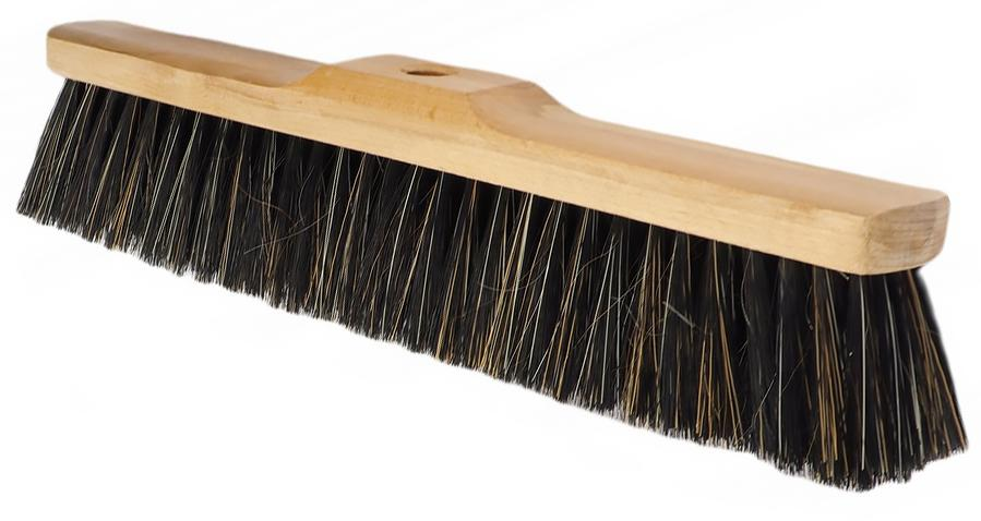Wykonana na bazie oprawy drewnianej lakierowanej. Otwór gwintowany na kij o średnicy: 22mm. Włosie plastikowe + naturalne. Szerokość szczotki: 30cm.