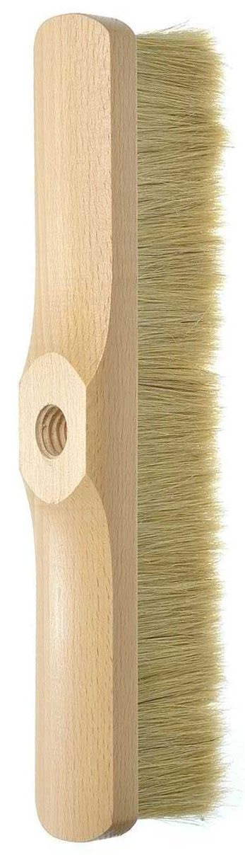 Szczotka wykonana została na bazie oprawy drewnianej. Zastosowane włosie to szczecina świńska. Szczotka posiada uchwyt metalowy na kij o średnicy 22 mm.